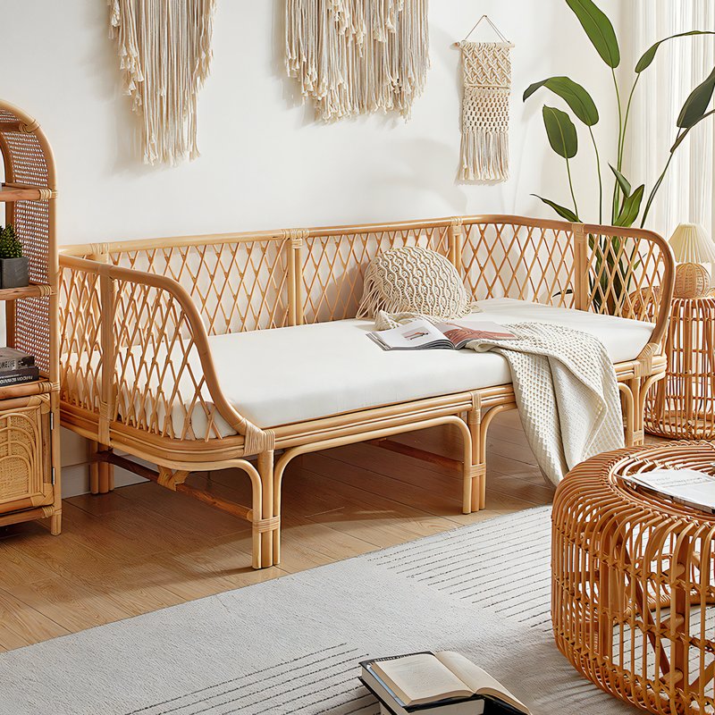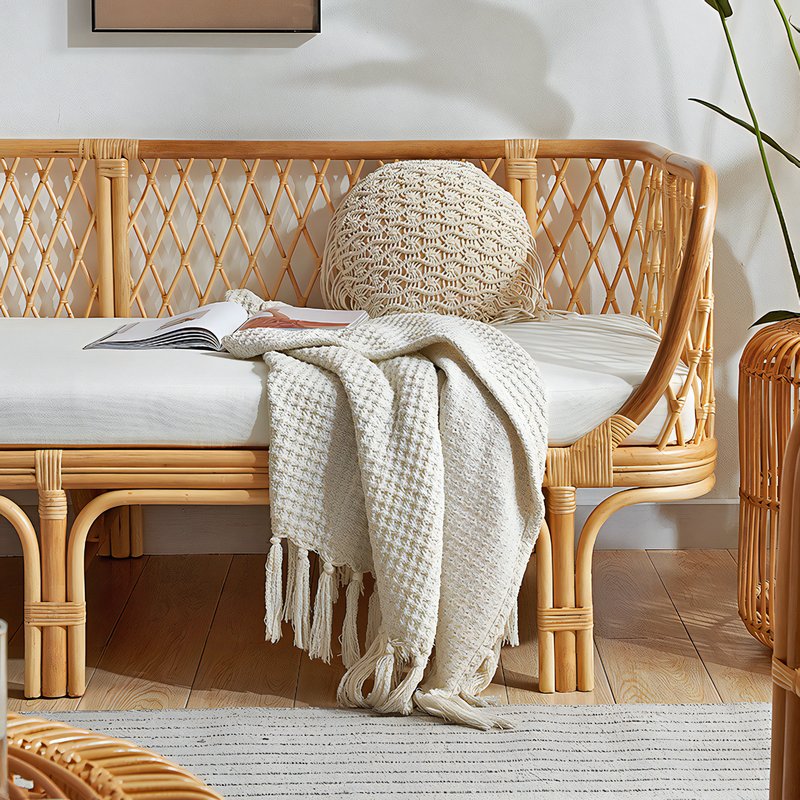 Avec leur design accueillant et spacieux, nos banquettes en rotin offrent une assise généreuse, idéale pour se détendre, lire ou profiter d’un moment de repos. Elles sont parfaites pour embellir votre salon, véranda ou n’importe quel coin de détente de votre maison. Le tissage en rotin non seulement ajoute une texture visuellement attrayante mais permet également une ventilation naturelle, rendant chaque assise plus agréable et fraîche.