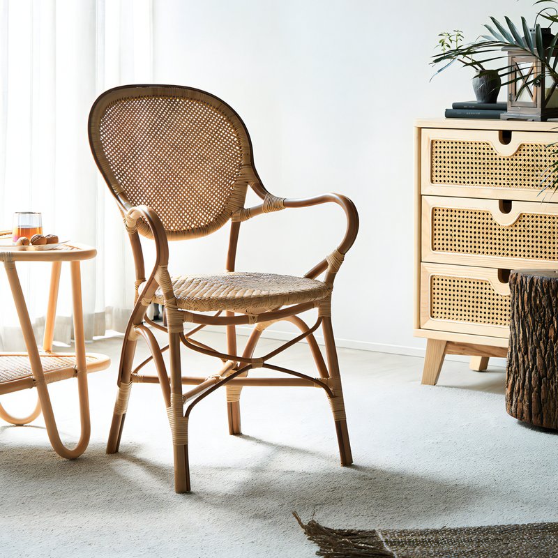 Chaise en rotin naturel avec accoudoirs élégants