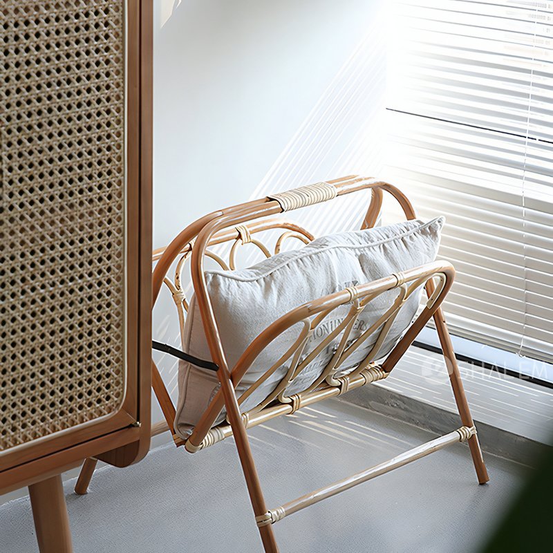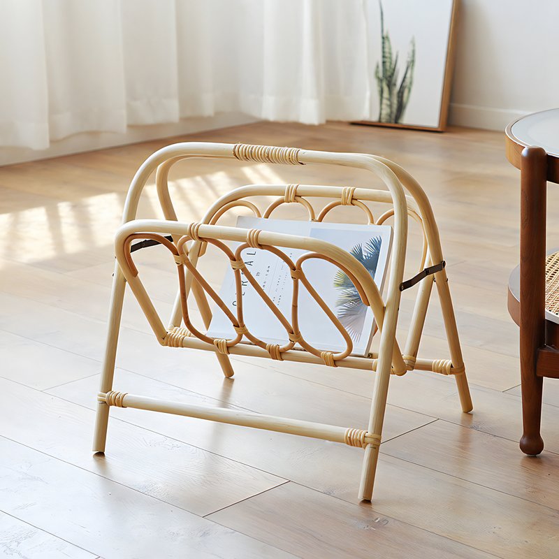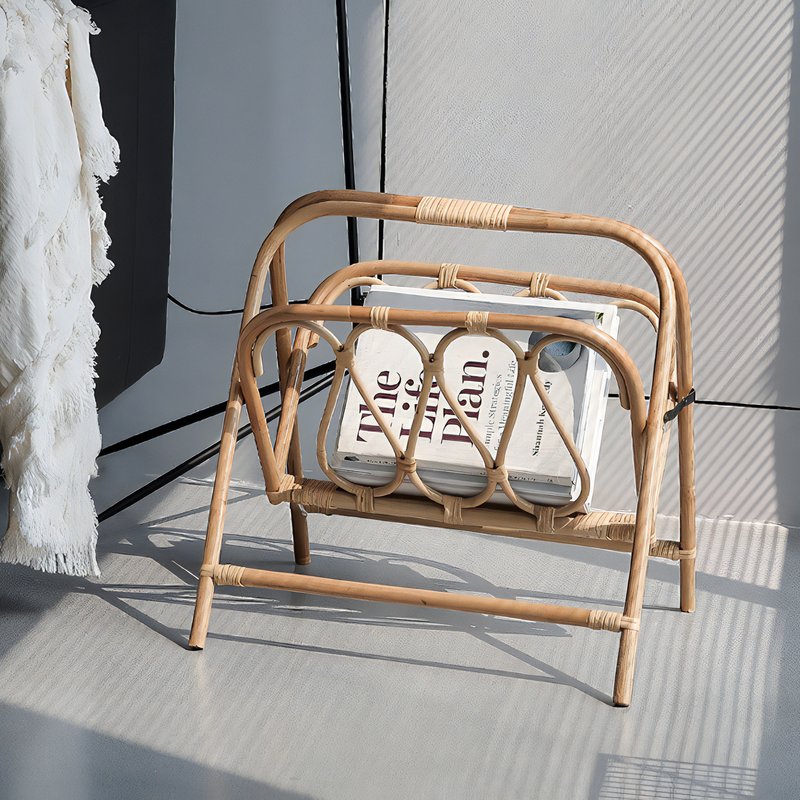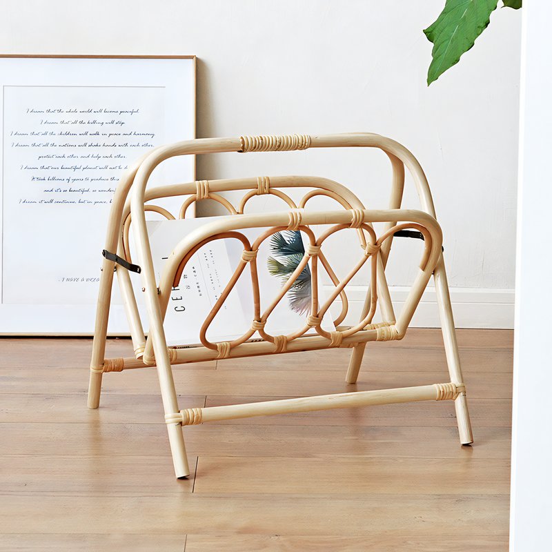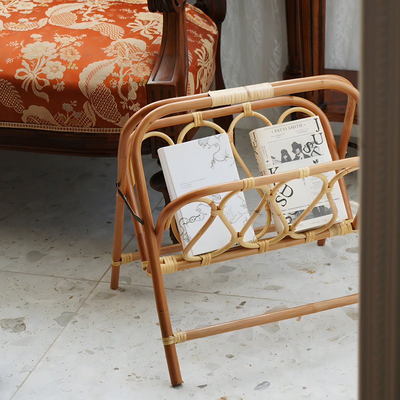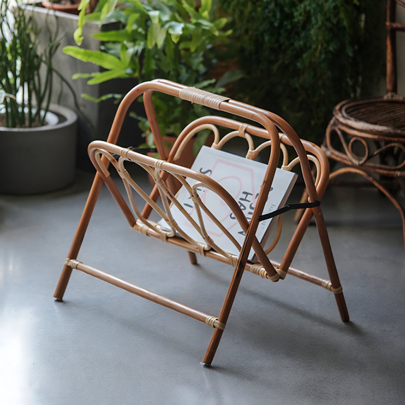 Porte-revues pliable en rotin, style bohème chic