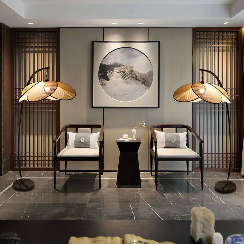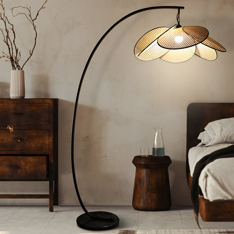 Les luminaires classiques sont fades et impersonnels. Le lampadaire GANDI apporte une touche d’originalité avec son design floral en rotin et bambou tressé, délicatement suspendu sur une tige arquée noire. Il ne se contente pas d’éclairer : il sublime l’espace.