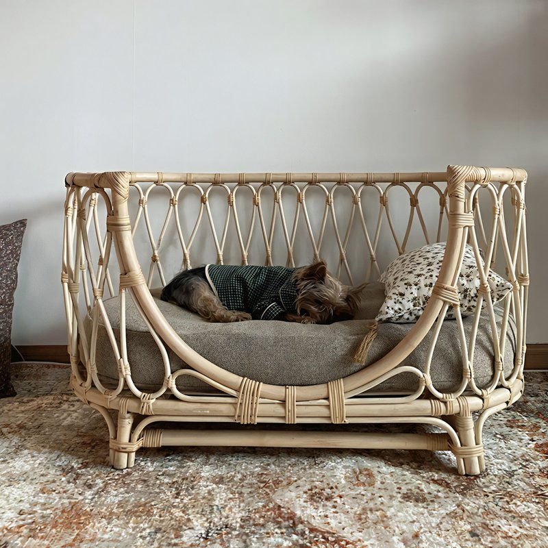 Ce lit en rotin naturel pour animaux SCAO allie style et confort pour votre compagnon à quatre pattes. Son design artisanal en rotin naturel apporte une touche chaleureuse à votre intérieur tout en offrant un espace douillet à votre animal. Le coussin moelleux, conçu pour le bien-être de votre compagnon, est facilement amovible et lavable, simplifiant son entretien et garantissant une hygiène optimale. À noter que la couleur et l’épaisseur du coussin peuvent varier en fonction de nos stocks.