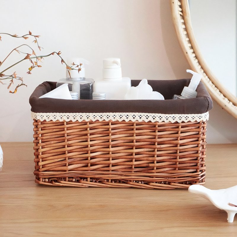 Organisez avec goût, décorez avec charme. Le panier ZEUS allie parfaitement esthétique naturelle et fonctionnalité quotidienne. Sa structure rigide en rotin assure une excellente tenue, tandis que son tissu marron doux et sa dentelle vintage ajoutent une touche chaleureuse à tout intérieur. Utilisez-le pour ranger des livres, produits de beauté, textiles ou objets du quotidien.