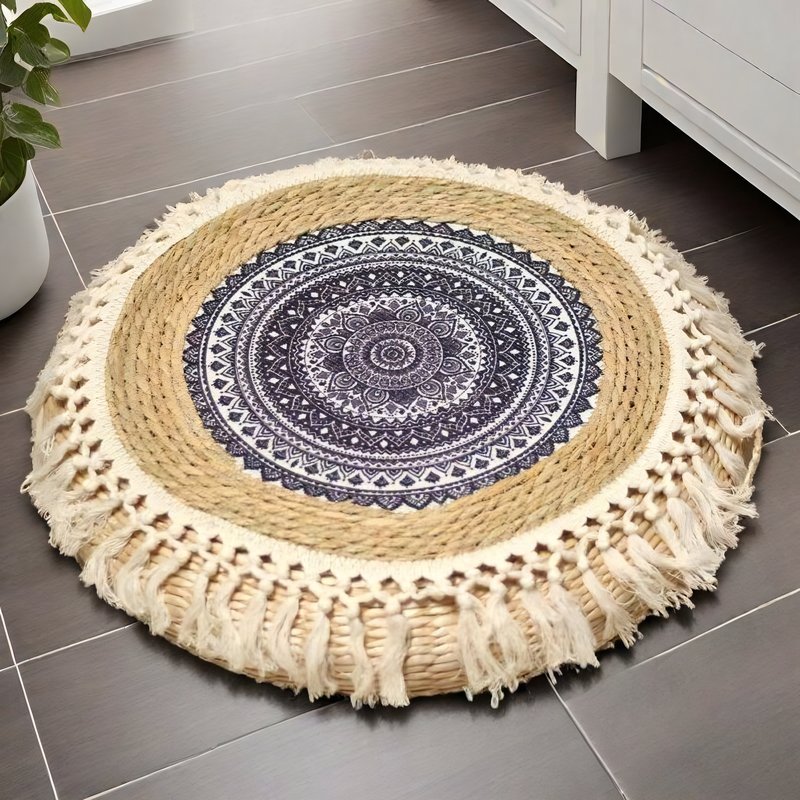Ce pouf est non seulement esthétique, mais aussi pratique. Le motif dessiné est amovible et lavable, vous permettant de changer de look facilement ou de revenir à un style plus sobre avec un pouf uni en rotin naturel. Le matériau rotin utilisé garantit une durabilité et une résistance aux utilisations quotidiennes.
