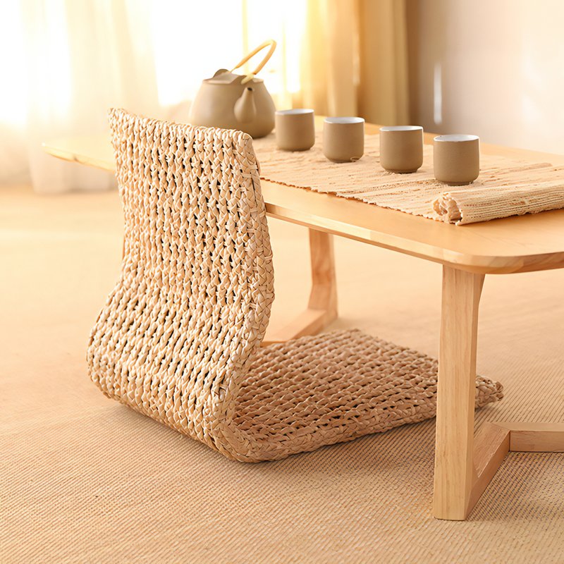 Pouf en rotin tressé avec dossier confortable VASICILI