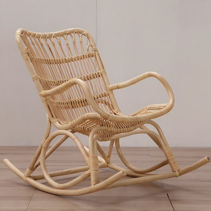 Leur design ergonomique et leur tressage délicat s’intègrent harmonieusement dans divers styles de décoration, qu’il s’agisse d’un salon, d’une chambre ou même d’un coin lecture. Les rocking chairs en rotin sont conçus pour offrir un balancement doux et apaisant, parfait pour se relaxer après une longue journée ou pour profiter d’un moment de lecture. Le rotin, matériau naturel et durable, garantit une robustesse exceptionnelle tout en étant facile à entretenir.