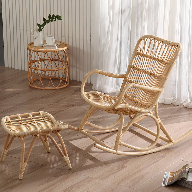 Parfaite pour les intérieurs qui cherchent à intégrer une touche de nature et de sérénité, cette chaise à bascule est idéale pour des moments de repos et de relaxation. La structure en rotin clair est légère et résistante, facilitant son entretien et sa durabilité.