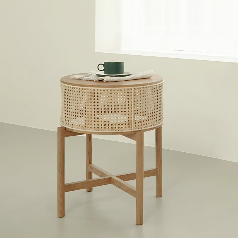 Imaginez un salon épuré, chaleureux, où chaque objet est à sa place. La table basse en rotin et bois brut JULIE est bien plus qu’un meuble : c’est une solution élégante et fonctionnelle pour organiser votre espace. Son design circulaire raffiné cache un rangement discret, parfait pour glisser télécommandes, magazines ou petits accessoires.