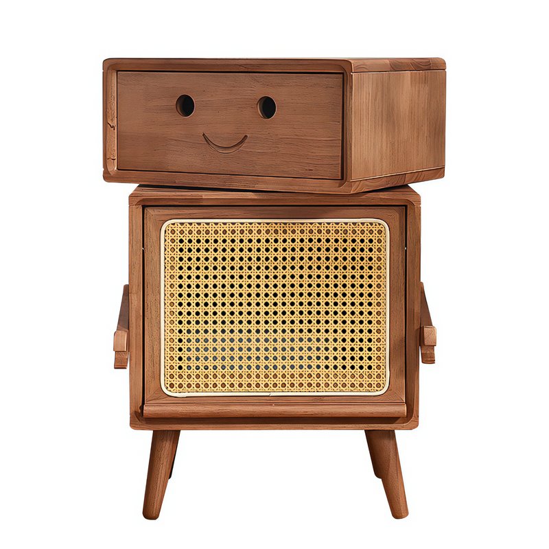 La table de chevet en rotin et bois pour enfant petit robot JIMMY est un meuble unique qui combine ludisme et fonctionnalité. Conçue pour les enfants, elle présente un design en forme de robot joyeux qui rend le rangement amusant. La structure en bois et rotin assure une durabilité et une qualité exceptionnelles.